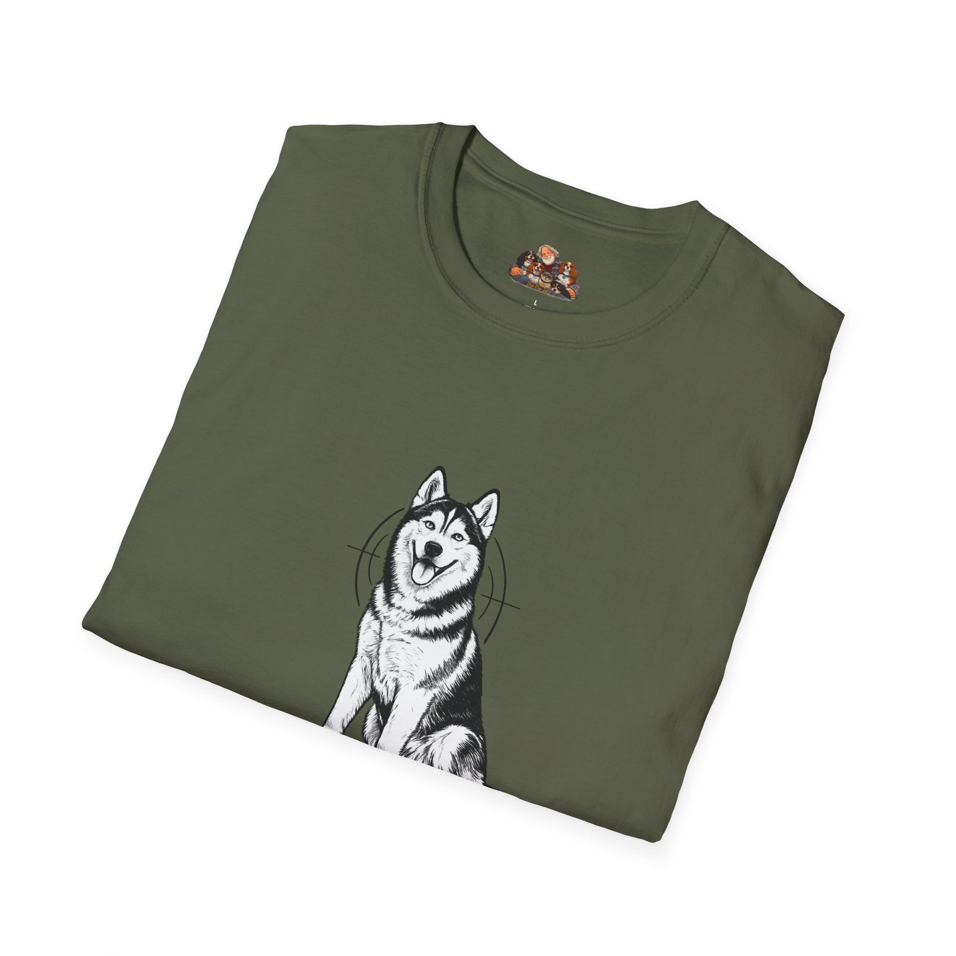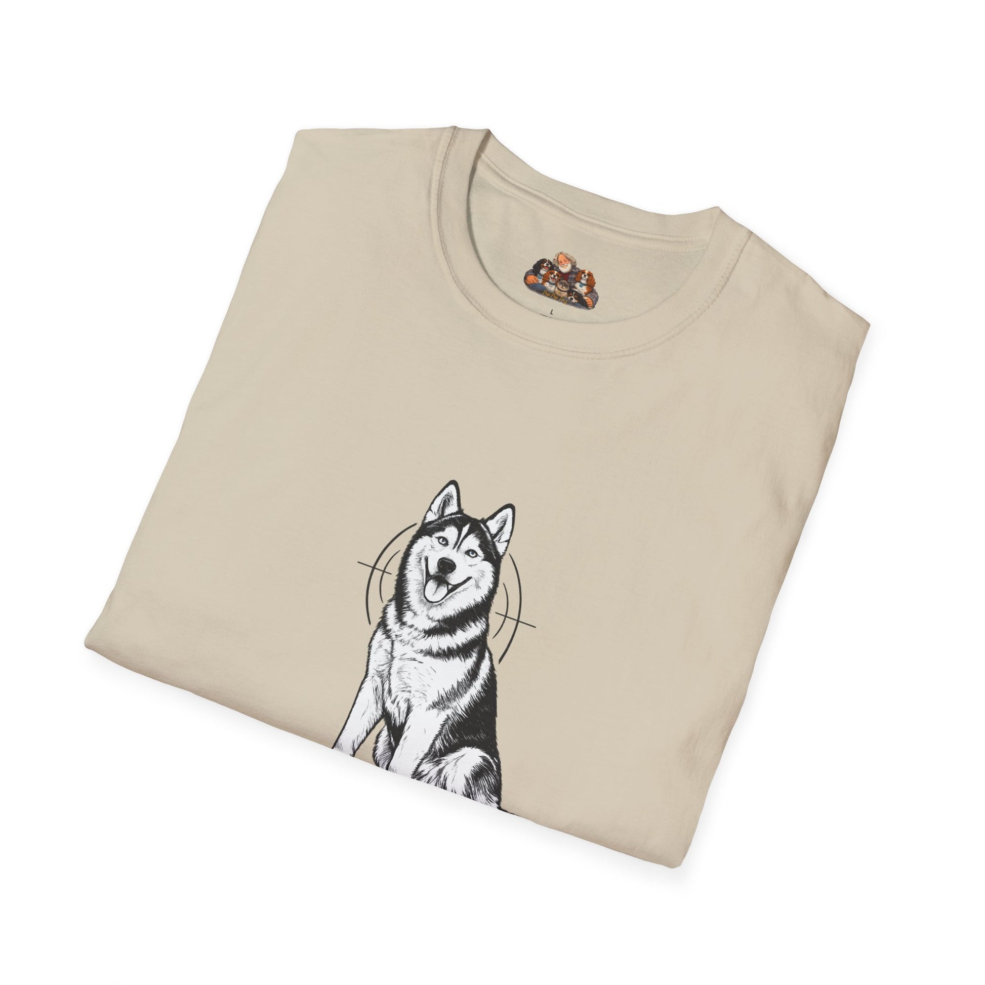 Celebrate Easter with bold confidence and loyal spirit. This clean, black-and-white design features a proud, seated breed accurate illustrated dog in sharp, detailed linework with a subtle crosshair egg badge behind the silhouette for a strong, masculine edge. Centered beneath the artwork, the statement “HUSKY DAD.” stands out in bold, modern lettering, with “EASTER 2026” completing the look.