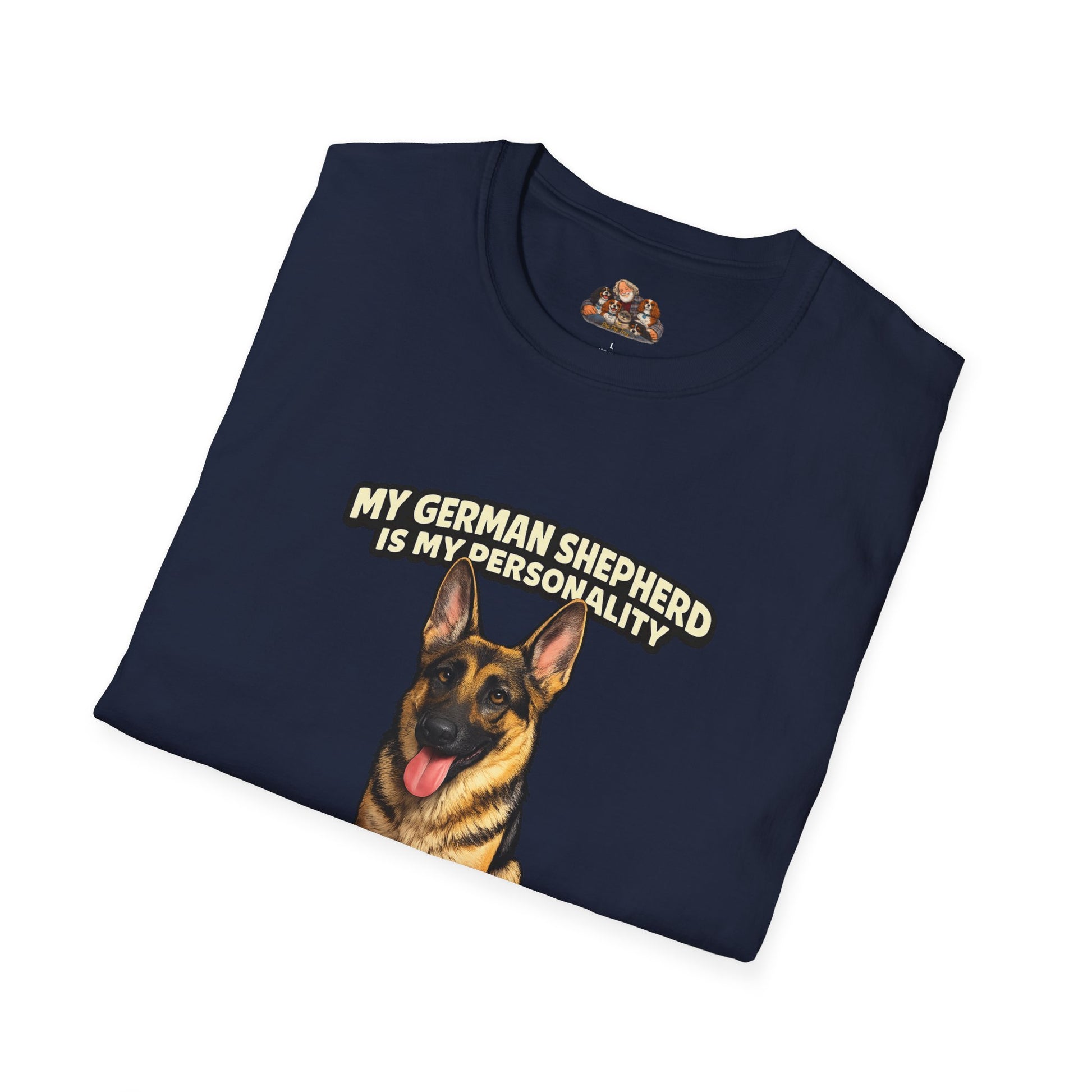 Celebrate your pup with a custom “My German Shepherd Is My Personality” shirt featuring YOUR GERMAN SHEPHERD illustrated in our clean, high-detail, semi-realistic cartoon style — plus a custom trait line that fits their vibe.